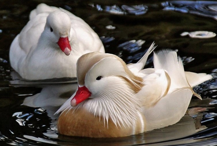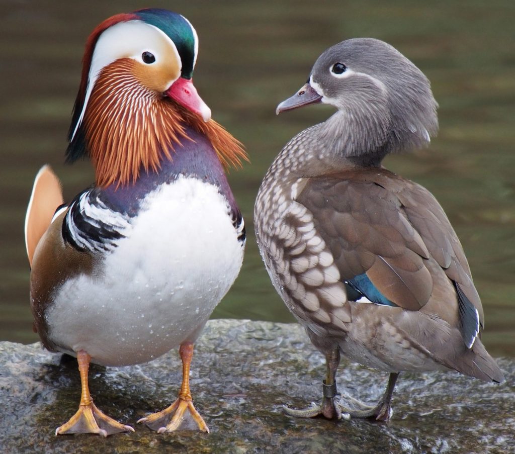 Conosciuta semplicemente con il termine di «mandarina», i maschi hanno una livrea splendida resa ancor più evidente per le note «vele» laterali di colore arancio-mattone (con piccolo bordino superiore biancastro) che si estendono verticalmente.