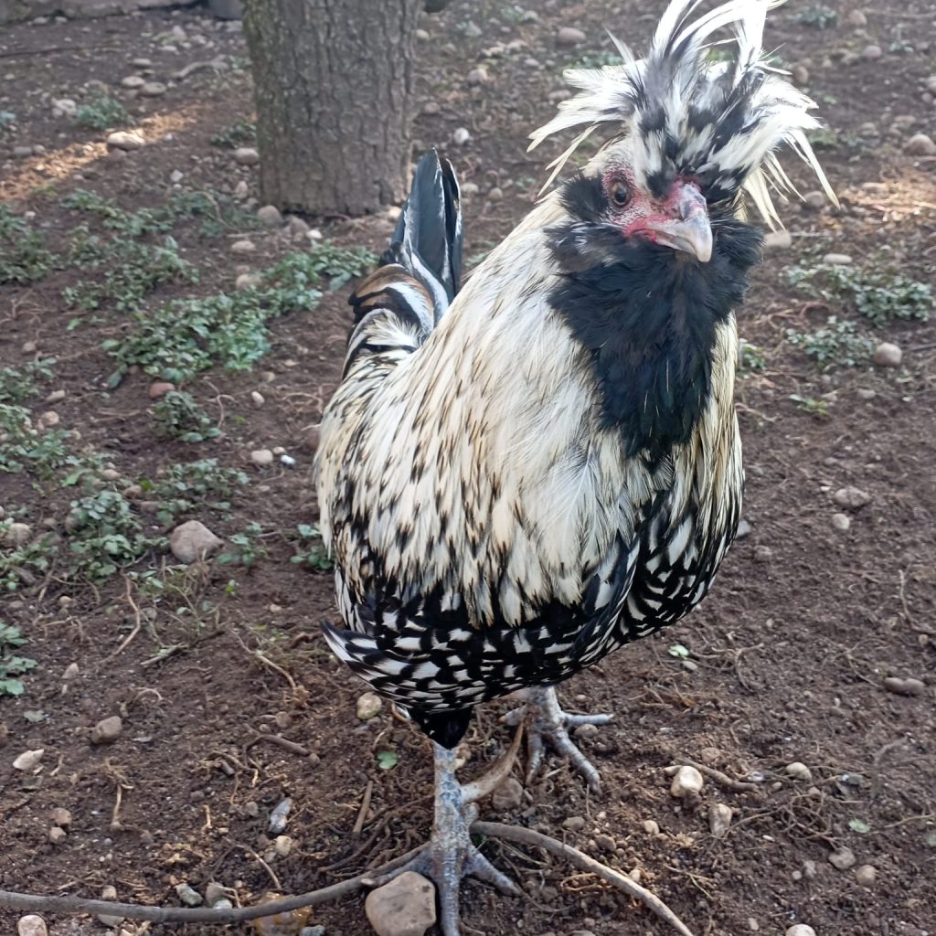 La particolarità della Padovana sta nel grande ciuffo che orna la testa e nella folta barba presente sotto il becco.